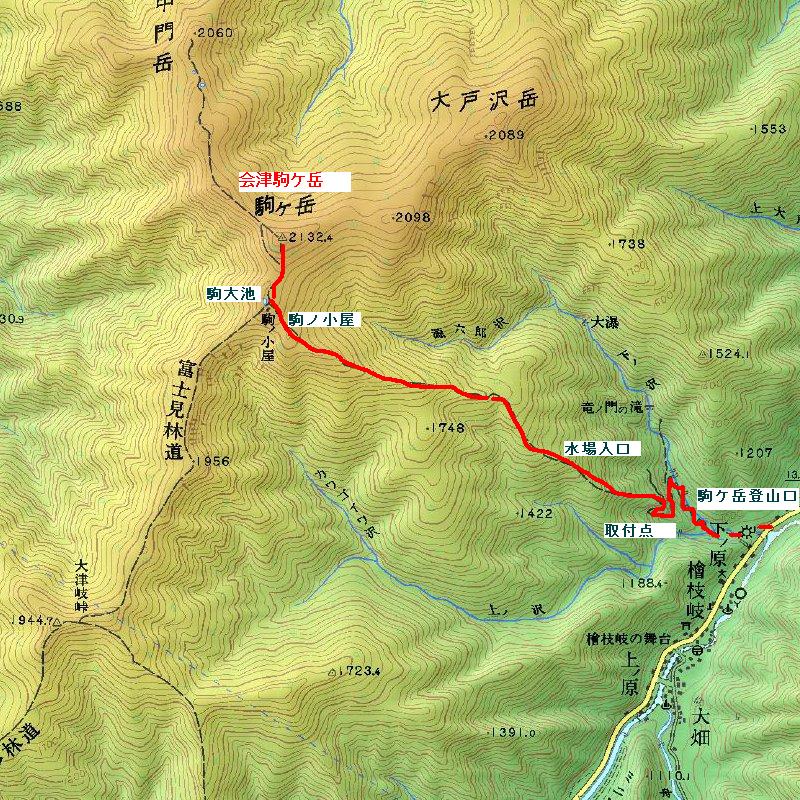 大宮駅から東武電鉄に乗り、会津鬼怒川線会津高原駅で下車した。会津高原駅から会津バスに乗り、駒ケ岳登山口で下車した。