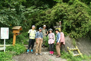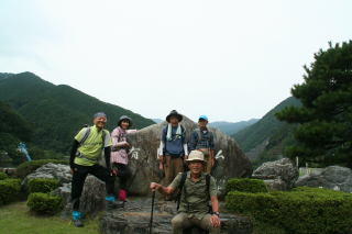 下山は、岩茸石までは往路を戻っていった。ゴンジリ峠から下っていくと、山道を塞ぐように、岩茸石が立っていた(下り経過45分)。その石を左に巻くように裏側に回り、滝ノ平尾根へと下って行った。途中、名栗湖がハッキリっと見ることができた。さらに進んでいくと、尾根を挟んで右側が針葉樹、左側が落葉樹とハッキリと分かれていた。入間川を渡り、左折してさわらびの湯に着いた(下り経過1時間35分)。