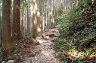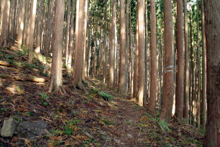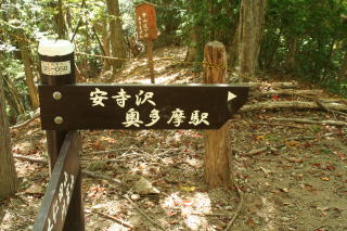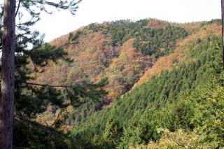 鳩ノ巣駅から駅西側の踏切を渡って、山の斜面の広がる棚沢の集落を抜けていった。集落の上端から山腹をぬって上がっていった。登りの一段落したところで、大根ノ山ノ神に着いた(登り経過時間35分)。杉の根方に小杜が祀られていた。大根ノ山ノ神からは、川苔山方面の登山道と分かれ、しばらくは山腹をからんで登るが、きつい急登だ。やがて自然林の中の尾根道となり、所々から周囲の山ひだが見えた。道の斜面がひときわ増すと瘤高山の登りにかかった。瘤高山山頂(登り経過1時間40分)は、狭く、樹林のため、景色を見ることができなかった。
