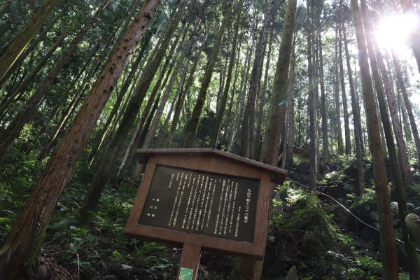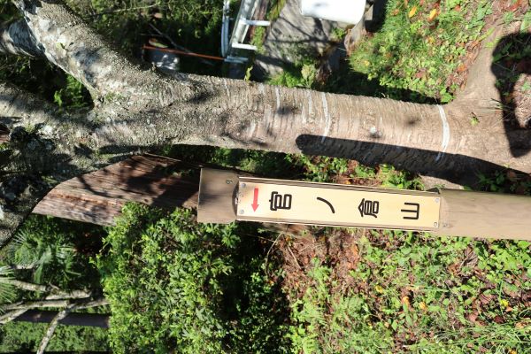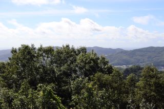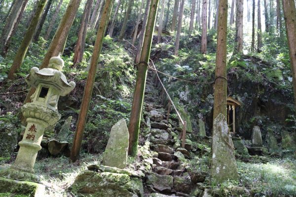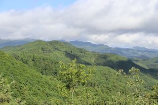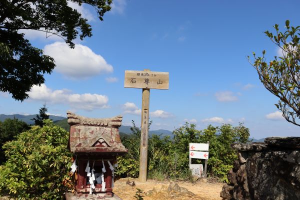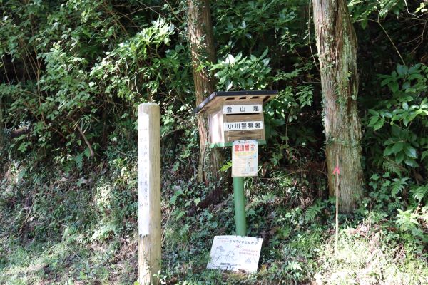 官ノ倉山から自然林の尾根を緩く下り、登り返した所が石尊山で(下り経過時間20分)、石の小杜が祀られた露石の山頂からは、展望は良かった。石尊山からの下りは、足場の悪い岩通りで、子供連れの祭は、注意してください。鎖の駈けられたところを過ぎると、緩やかな沢沿いの道になった。ゴルフ場の連絡橋の下をくぐった先、右手上の山腹に北向不動尊が祀られていたのに出会った(下り経過1時間分)。笠山集落の途中から左に折れて、国道254線に出て、あとは小川町駅まっすぐに向かっていった。そうするうちに小川町の駅に着いた(下り経過2時間40分)。