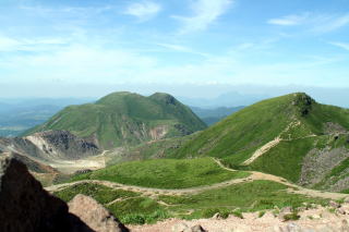 快晴のため、岩井川岳、星生山、中岳、稲星山がくっきりと、見ることができた。また南側には、久住高原が開けて見えた。
