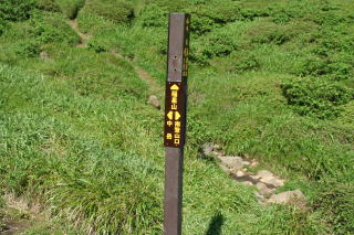 源頼朝の巻狩りの由緒を伝える寺は、竹田市久住町建宮に移転し、今も久住山信仰の法灯を守り続けている。 再び流れをまたぎ、アセビ並木を進み、久住高原ロードパークの下のトンネルをくぐって、中組牧場の作業場を南東へ向かっていった。 牧柵を出ると登山届箱が置かれた南登山口に着いた。(下り経過1時間50分)。