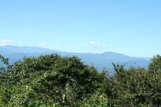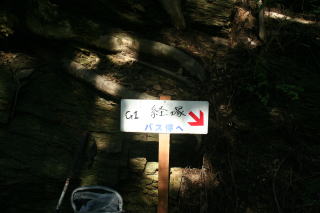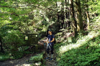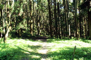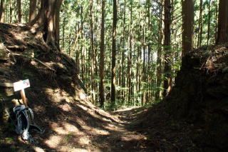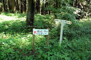 下山は、南に続く尾根道を辿っていった。大霧山東側一帯は牧場になっていて、道の左に沿って有刺鉄線が張られていた。牧場の脇から、この前登った笠山と堂平山が良く見えた。724mの二子山と呼ばれるコブを過ぎ、蓑山や奥多摩、奥秩父の山々、両神山、御荷鉾山が見渡せる桧平の台地に出て、道は左に急曲していた。桧平からひとしきり急な下りとなって、旧定峰峠に着いた(下り経過40分)。ここで尾根道と分かれて、東に下っていった。山道はすぐに作業林道にでた。この道を左手に下っていくと、槻川の谷を隔てて、堂平山や剣ケ峰が見えてきた。登山道は歩きやすかった。一時急な下りとなって、沢べりに下っていき、新定峰峠を越えてきた車道に出て、その角、経塚バス停に着いた(下り経過1時間25分)。