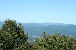 橋場バス停から、槻川を渡り、栗和田集落に向かっていった。しばらく進んで、坂の途中に近道があり、右手に折れて畑地を抜けて登ると、栗和田集落に着いた。茶畑の斜面越しに大霧山が見え、振り向くと、笠山、堂平山が大きく見えた。集落を外れると車道は二分しているが、左の狭い方を進んでいった。再び舗装された車道に出て、左に上がると粥新田峠で(登り経過50分)、東屋と案内版があった。大霧山はは、峠から左へ尾根どうしの道をとっていった。歩きやすい道であったが、山頂近くになると急坂となり、それを超えると大霧山山頂に着いた(登り経過1時間45分)。標高767mの山頂は、北側の樹木が刈られ、武甲山から西上州の山々、蓼科山、八ヶ岳、白石山、視界が良かったので日光連山が見えた。